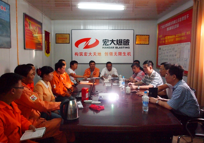 7月19日下昼,,广东省广业资产谋划有限公司副总司理王健、工会副主席何继长等一行向导,,在广东j9真人爆破股份有限公司党委副书记郜洪青的陪同下到我公司必鲁甘干项目部检查事情。。。 王总一行向导检查必鲁甘干项目部施工现场,,并与现场作业职员举行了亲热攀谈,,详细询问项目部的生产情形。。。检查完...